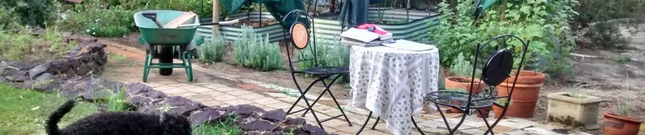 I’m in nature. Early morning chirping of birds while Ruffles my poodle unearths my newly planted herbs. His paws print my white pants. I’m probably in denial about wearing white in the garden with a puppy.